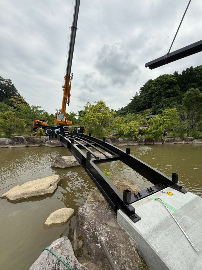 その他 太鼓橋 製作施工 景観橋施工 公園の景観美を彩る「アーチ型太鼓橋」を施工しました 自然豊かな和風庭園の景観に調和する、アーチ型の太鼓橋を新設。強度と耐久性に優れた鉄骨構造に、温かみのある木目調の床材と朱色の欄干を施しました。水辺に架かる景観美と安全性を両立し、地域の憩いの場として好評を得ています。 navigate_next 次の施工事例 工場・プラント 倉庫建築における鉄骨フレーム施工事例 1 / 1